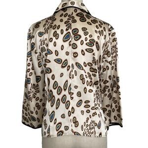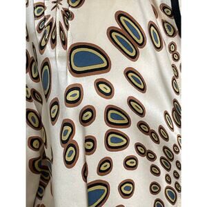 i.e. Silk Blouse Gold Pattern Button up Top