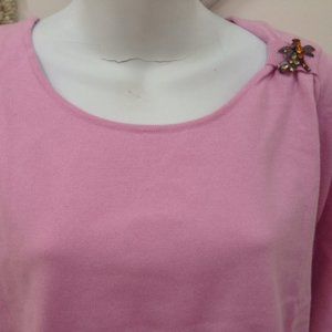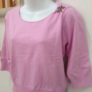 i.e. Sweater with Brooch, Size PXL, Color: Pink, 70% Cotton, 30% Nylon