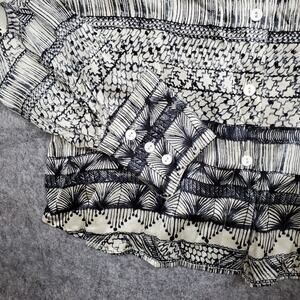 i.e. Top Womens Size 10 Silk Blouse Button Front Geometric Satin Aztec Western