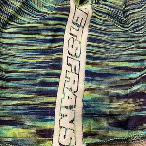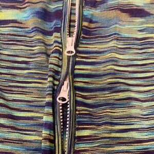 Shades of green and blue captivate across a form-fitting cardigan that let's you dial the daring up and down with a two-way zipper fastening the front.