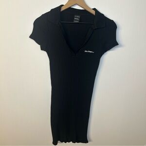 iets frans... Black Ribbed Split Collar Polo Dress from Urban Outfitters, Size Medium.