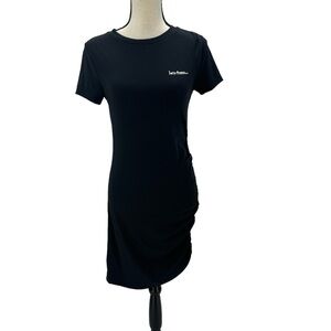 iets frans Short Sleeve Crew Neck Side Ruched Tee Shirt Dress - Black - Medium