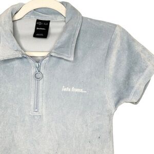 iets frans XS Blue Velvet Quarter Zip Mini Dress