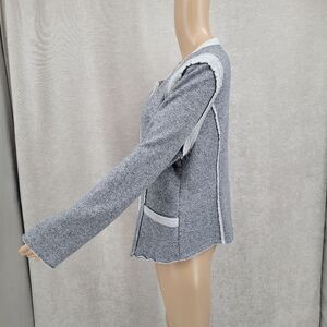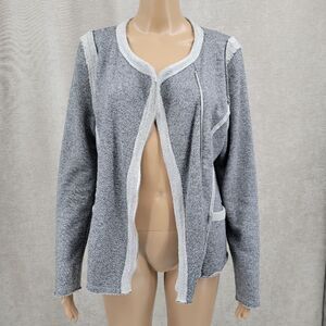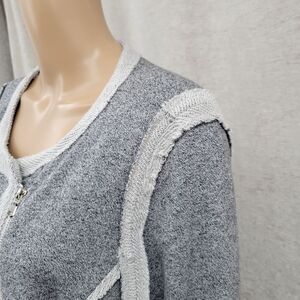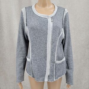 ii Sisters Gray Asymmetrical Full Zip Cardigan Sweater Jacket Cotton Terry Knit