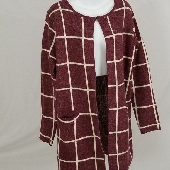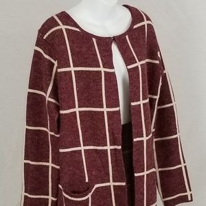 Burgandy and cream window pane check duster sweater by ii Sisters. Size M/L