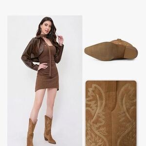 iiimmu Cowgirl Boots Pointed Toe Block Heel Cowboy Faux Leather