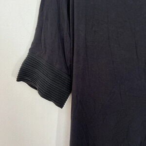 iisli Womens Black Drop-Waist Dress 3/4 Sleeve Rhinestone cuff accents Scoop Back. Viscose/Lycra/Cotton mix