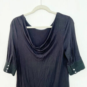 iisli Womens Black Drop-Waist Dress Sz Medium 3/4 Sleeve Rhinestone Cowl Back