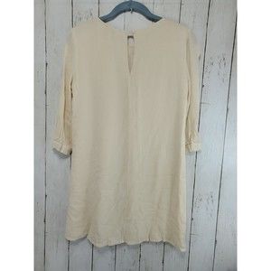 illa illa Long Sleeve Dress Light Tan Crochet Print Size Small 100% Rayon Nice!.