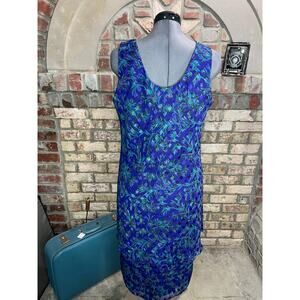 wonderful sleeveless dress, solid lining with sheer over layer and matching sheer jacket with shoulder pads. 100% polyester