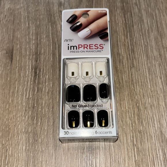 imPRESS Press On Nails Black, White and Gold Colors No glue needed! New in box!