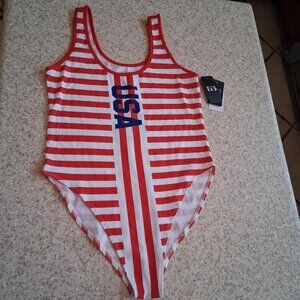 iml Red white and blue usa body suit size med measurements in pics cotton blend