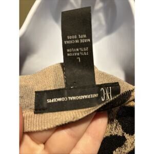 The product is a women's long top by INC International Concepts in a leopard print pattern with a v-neckline and beaded accents. The top features long sleeves and a pullover closure, making it easy to wear and stylish for various occasions. Made from a blend of nylon and rayon, this top is in a size M and showcases a basic yet fashionable style. Perfect for those who love animal prints and want to make a statement with their outfit choice.