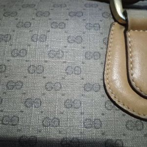 Authentic Vintage Gucci Web Boston Bag Brown Monogram vinyl with leather details. Medium Purse. Good preloved condition.