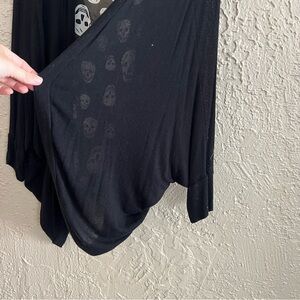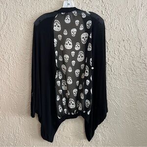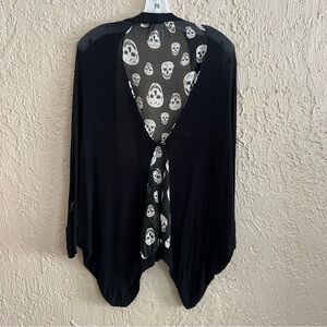 Adorable thin open front cardigan with skull detail. Back can be buttoned for a more fitted look or left open.