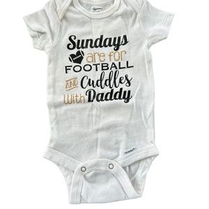 White Gerber infant girl football with daddy onesie. Size 0-3 months. 1x wear with no stains. Smoke and pet free home.