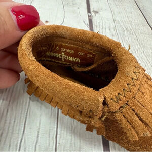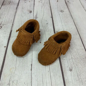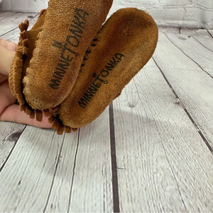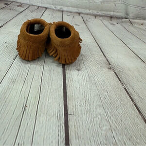 infant minnetonka slip on baby moccasins with fringe size 0 suede leather