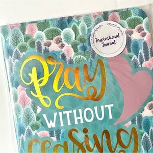 bible lined inspirational notebook with gold script writing on cover “Pray without Ceasing 1 Thessalonians 5:17”. Crown Jewels women owned brand. brand new 🆕! 8.5” x 6”.