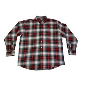 intage J.Crew Button Up Shirt Mens Large Red Plaid Collared Flannel.