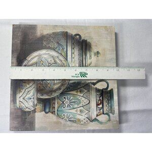 The product is a pottery picture by Interiors By Design, measuring 9.84 x 9.84 inches and featuring a square shape. It is made of MDF composite material, showcasing a pottery design of soft hue colors design in a cottage core style. Perfect picture for a kitchen.