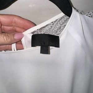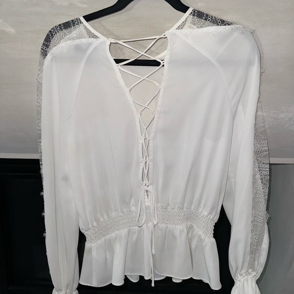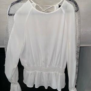 adorable lace and chiffon white intermix blouse. ties up the back and you can wear either way. elastic bell sleeves.