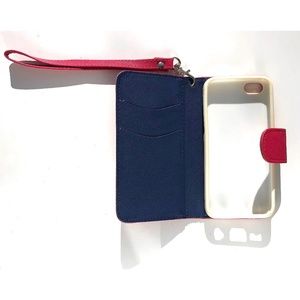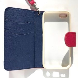 🦋 iphone 5s cell phone case with book cover and strap and card slots hot pink