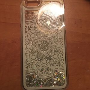 silver with mandala. stars and glitter move when you turn phone case upside down