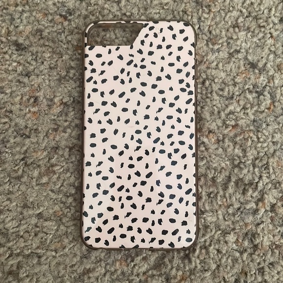 iphone 8+ case, pink with black polka dots