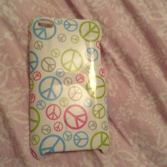 it is an ipod case it is white and it has peace signs