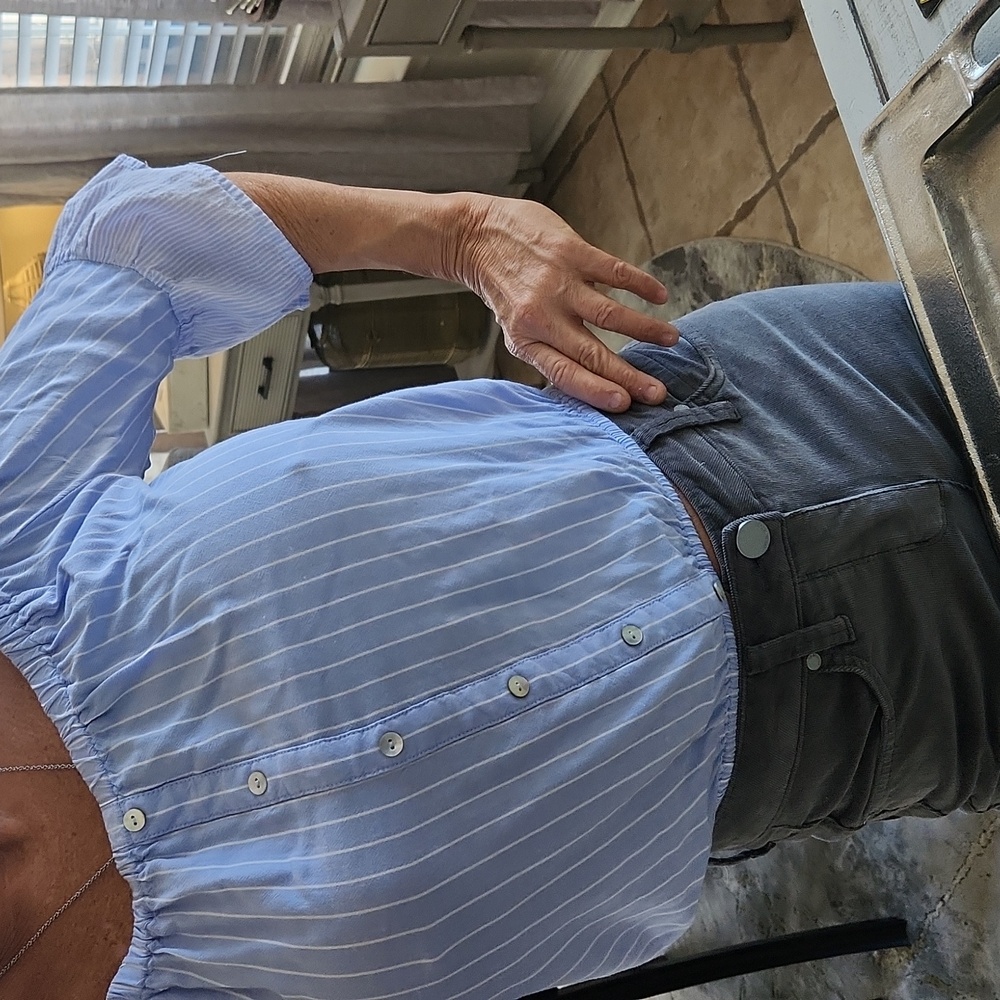 GREAT condition faux button down front flowy elastic shoulders elastic waistband no smoking