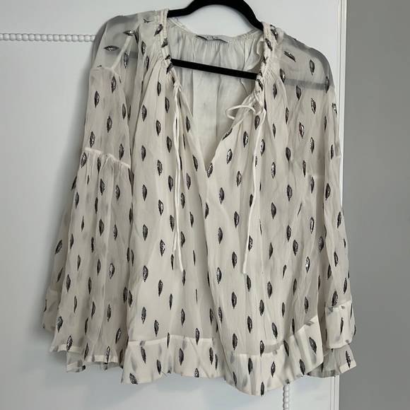 iro top long sleeves sleeves are sheer body is lined metallic silver teardrops peasant, top with drawstring at the neck size 36