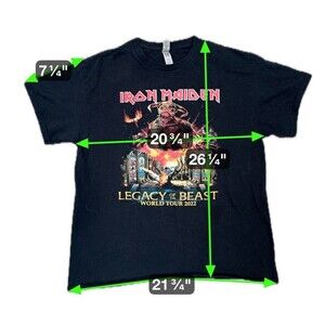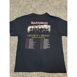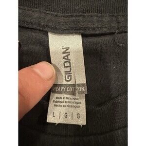 The product is a black cotton T-shirt with a graphic print featuring Iron Maiden, Sabaton, Judas Priest, Dismember, and Carnage. It has a regular fit and is machine washable, making it convenient for daily wear. The shirt is in size L, perfect for men who appreciate music-themed clothing. The Gildan brand ensures quality and durability, making it a must-have item for fans of these iconic bands.