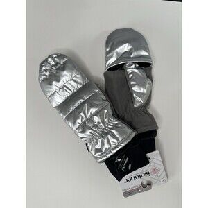 isotoner Sleek Heat Flip Mittens Quilted Silver Touchscreen Gloves Size L/XL