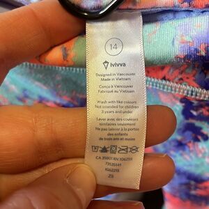 ivivva by Lululemon Wild Daze Grapefruit Rhythmic Crop Legging, size 14. Excellent used condition. Such a pretty print!