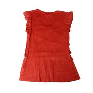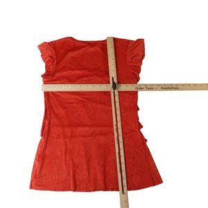 izBYER Top Women's Cap Sleeve V-Neck Blouse Asymmetrical Ruffle Red Small