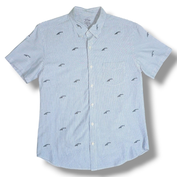 j. Crew | Lightweight Oxford Pin-Striped Embroidered BlueWhale Button Down Shirt