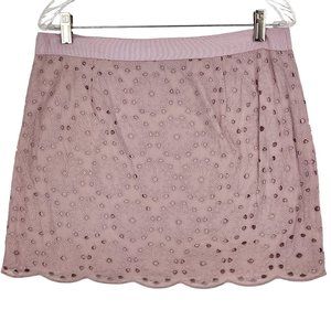 j. Crew Skirt Size 10 Pink Floral Crochet Eyelets Cut-Outs Lined 100% Cotton