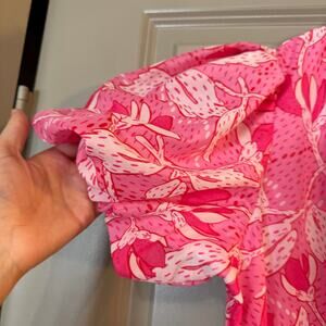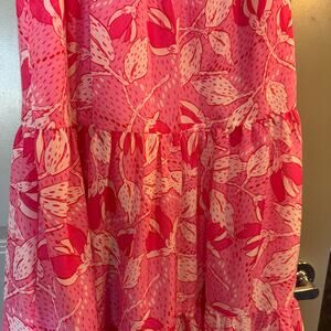 j. Marie Women's Size Small Pink Floral Print One Shoulder Ruffled Midi Dress