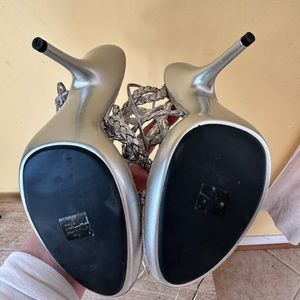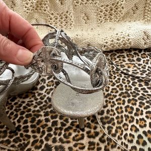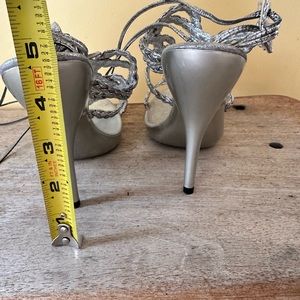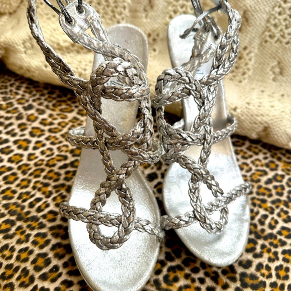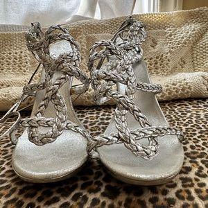 These beautiful sexy yet elegant braided sandal ties up from the back of the ankle with strappy ties that are about 21” long on each side enough to go around your ankles a couple few times.