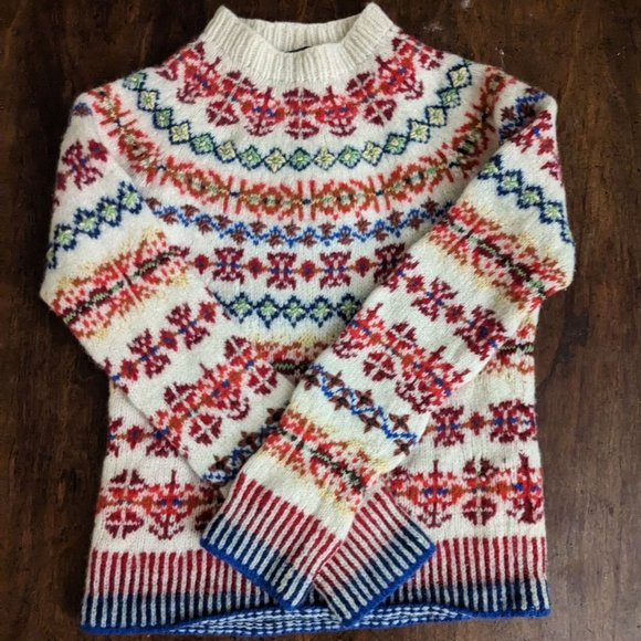 j. crew fair isle nordic style handknit mockneck sweater size xs-s