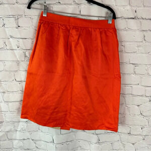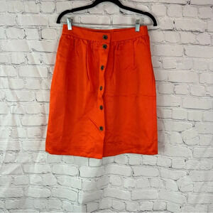 j. crew linen blend button front twill midi pencil skirt sz 4 bright orange