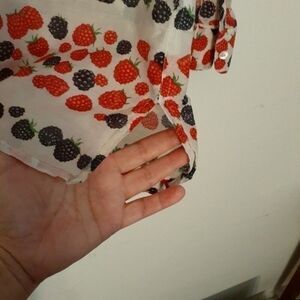 the fruit shirt is shown on a size 2 mannequin. it is marked 0p. fits like a xs. 18.5 pit to pit. soft lightweight fabric. excellent condition . J.Crew top cotton silk shirt tunic top pink red blue raspberry fruit motif
