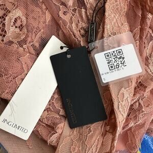 j ing limited pink sheer lace long sleeve button front lined Maxi Dress Size S
