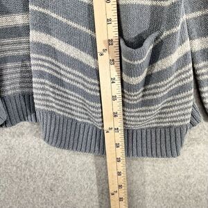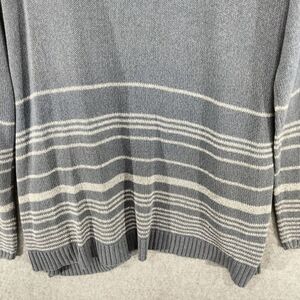 j jill Cardigan Sweater Womens S Gray Blue White Striped Open Front Tight Knit