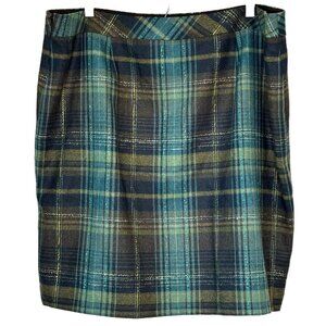 j. jill Wool Blend Tartan Plaid Womens 18 Button Front Blue Green Skirt Academia