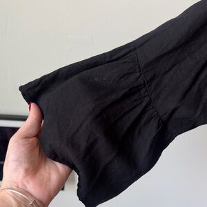 Elevate your wardrobe with this elegant black blouse, featuring intricate embroidery for a refined touch. Ideal for any occasion.