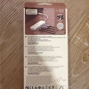 Eco-friendly j5create USB-C hub with four ports. Sleek white design.
