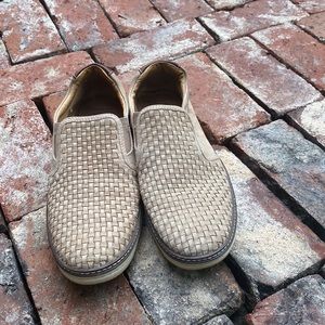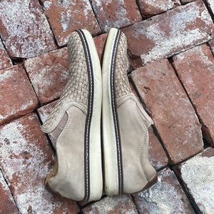 Leather/performance fabric-covered cushioned insole.