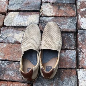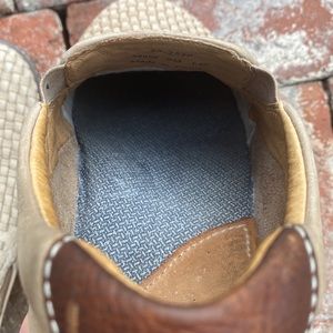 Leather/performance fabric-covered cushioned insole.