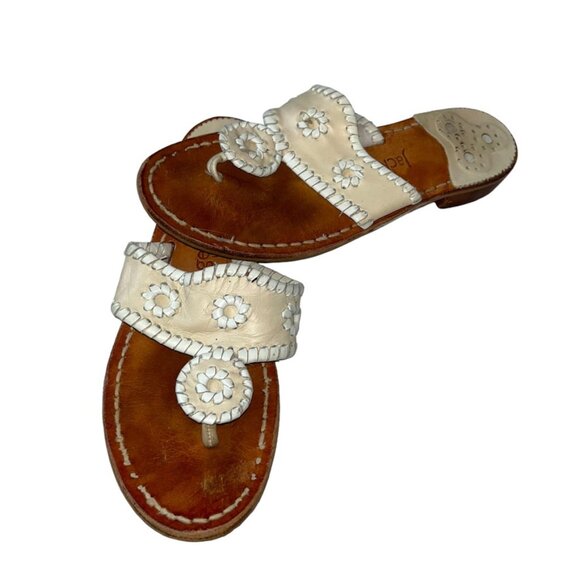 jack rogers classic champagne beige pink white slides thongs leather sandals 6